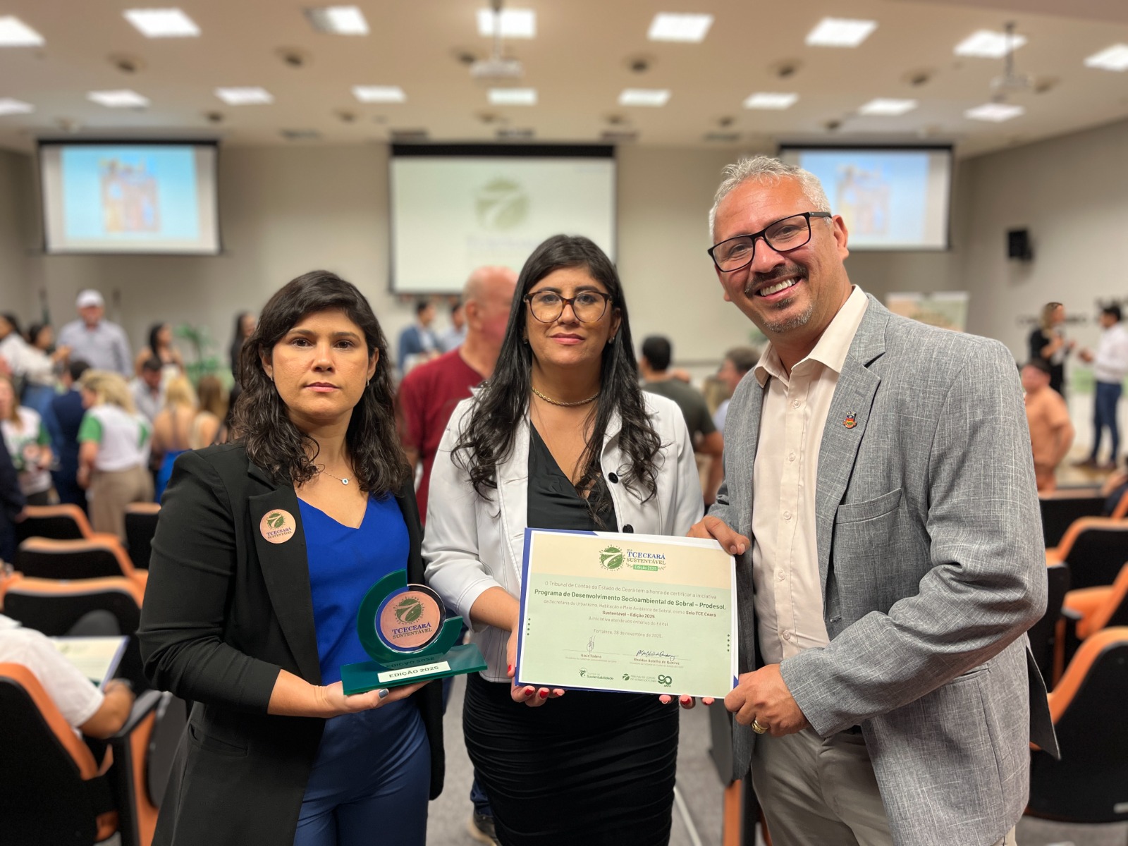 A Prefeitura de Sobral, por meio da Secretaria do Urbanismo, Habitação e Meio Ambiente de Sobral (Seuma), recebeu nesta sexta-feira (28/11), o Selo TCE Ceará Sustentável–Edição 2025, na categoria órgãos e entidades. A certificação é concedida pelo Tribunal de Contas do Estado do Ceará (TCE) e reconhece boas práticas de responsabilidade socioambiental alinhadas à Política de Sustentabilidade da instituição.