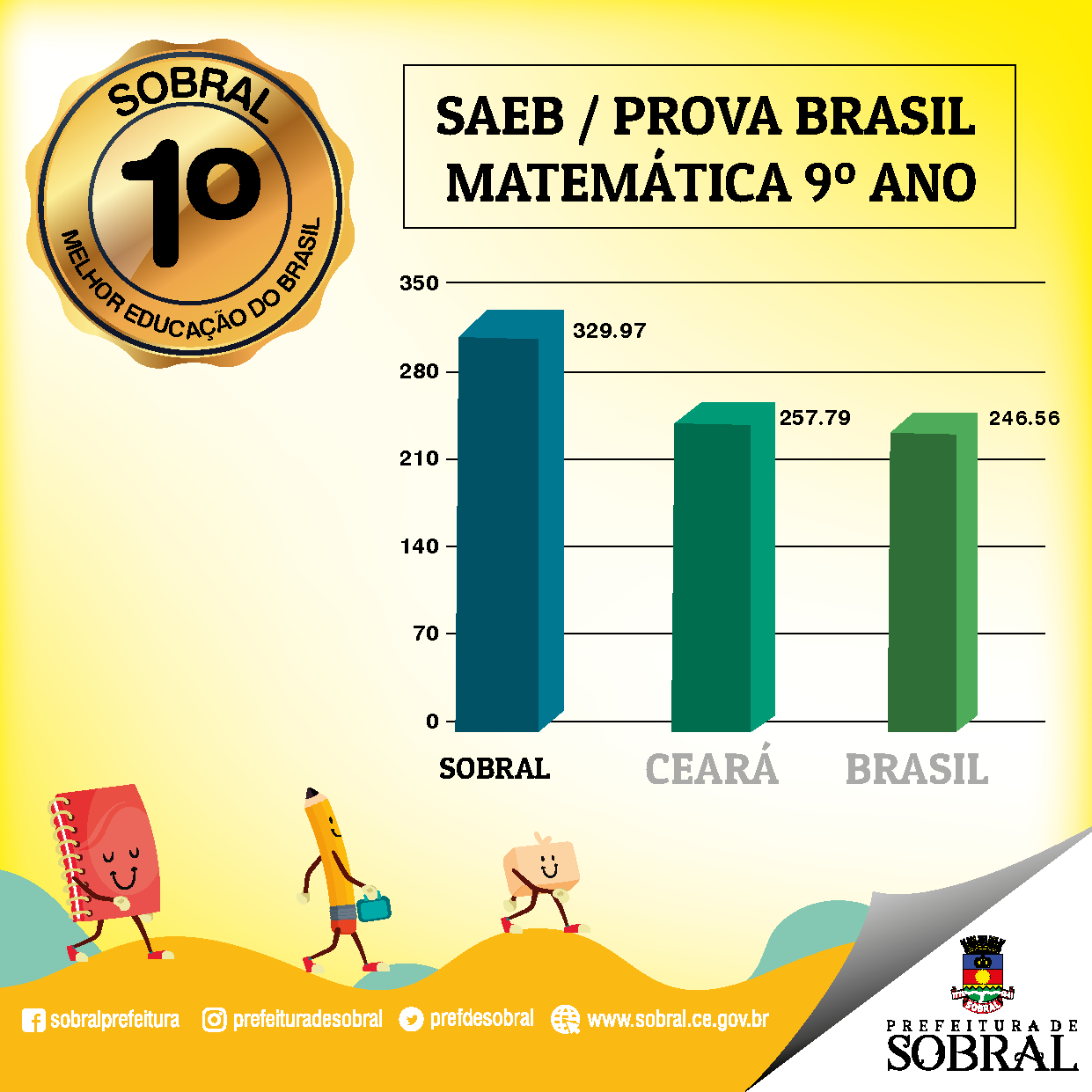 Os estudantes das escolas municipais de Sobral conquistaram avanços na aprendizagem em todas as etapas e áreas do conhecimento, quando se compara as edições de 2017 e 2015. O município registrou as maiores proficiências médias do Brasil em Língua Portuguesa (285,45) e Matemática (313,32), na avaliação da aprendizagem dos estudantes do 5º ano do Ensino Fundamental, resultado superior à média nacional que foi de 207,13 e 216,58, respectivamente. Sobral também conquistou a maior proficiência em Matemática (329,07) no 9º ano do Ensino Fundamental, acima da média brasileira que foi de 246,56.