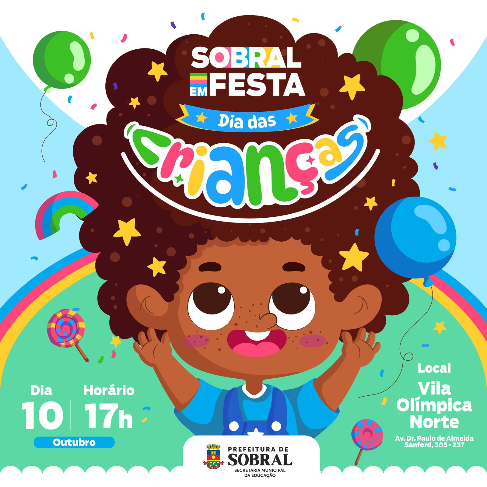 A Prefeitura de Sobral, juntamente com todas as secretarias municipais, está preparada para receber as crianças e seus familiares, para celebrar a infância com muita alegria, diversão e segurança.