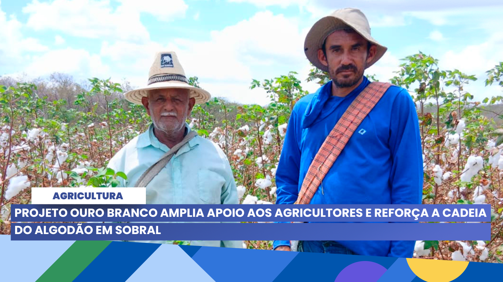 A Prefeitura de Sobral, por meio da Secretaria da Agricultura (SEAGRI), concluiu mais uma etapa do Projeto Ouro Branco, iniciativa que vem fortalecendo a produção de algodão no município. A ação garantiu assistência técnica aos produtores, preparo das áreas de plantio e apoio logístico para a comercialização do produto.